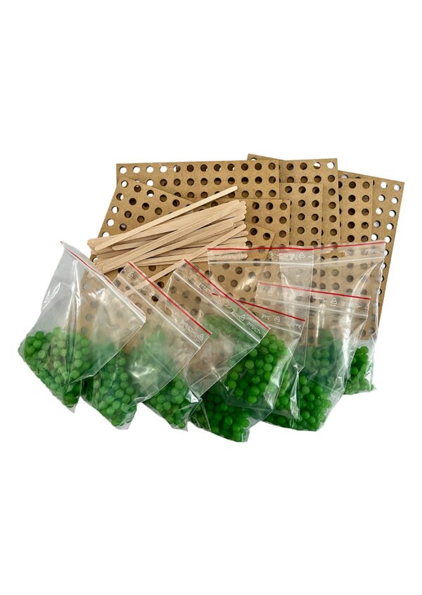 7 hulplader, 1050 perler og 28 pinde